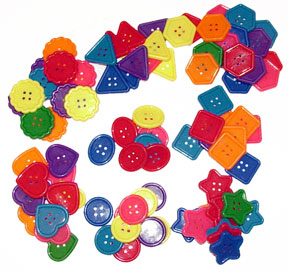 These GIANT buttons are hard plastic and what a great addition of color, texture and shape for adding to your make your own toys project! You can use paper rope, cotton cord, sisal or paulie rope to tie onto existing toys or string up new ideas of your own!