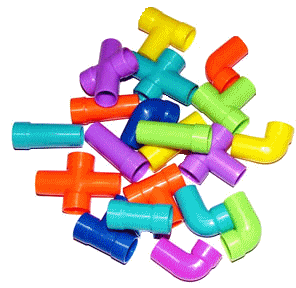We found some fun new parts for your toy making endeavors! These are colorful, plastic and come in straight, curved, t-shaped and 4-way with holes from 5/8 to 3/4" so you're only limited by your imagination. They can be stuck together for a puzzle toy, added to existing toys to give them a new look or get creative and make something your FID will enjoy!