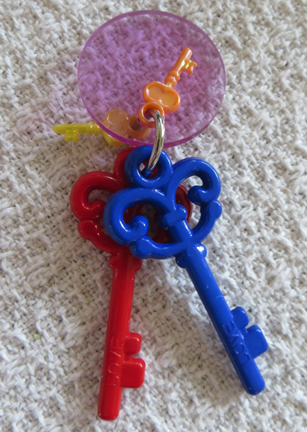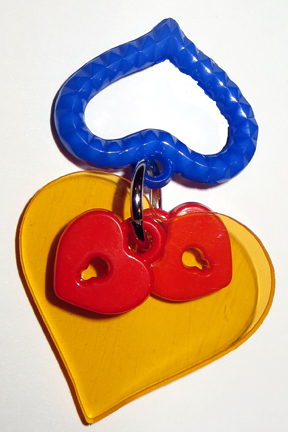 For the bigger beaks in your house ... we present the Busy Beaks Dangle Foot Toy! The Seahorse version has two colorful almost 2-1/2" seahorses flanked by a pseashell and a fun flip flop ... overall measurement is approx 4.25" Long x 1.75" Wide. Another option available currently is the Key version which has two fun skeleton keys (2-3/8" long) flanked by smaller key charms. The Hearts Dangle is a 3" wide translucent heart with a heart lock pendants on either side and an open heart in the middle. The Parrot Dangle has a fun, acrylic tulip with a macaw pendant flanked by some fun tulip charms. What fun!!