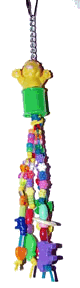 For those bead loving parrots ... this toy is hung from a pear shaped quick link on nickel plated welded chain and has a great zoo animal on top of a plastic spool from which there are four Paulie Rope legs filled with beads and a larger plastic animal shape on the bottom. What fun ... and I've hyper linked all the components so you can make your own or refill as needed!