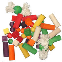 to include in your cage) are just a few inexpensive ways to refill the basket! The B&G Macaw, Jazzi, photographed top right gets left over goodies put in the nut cage like wooden pieces broken off of other toys that still have chewing life, some bamboo, cardboard ... great place for recycling those pre-chewed toy parts!