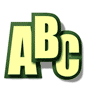 ABC blocks, separated by colorful beads, slats of wood and plastic chain, with more a smaller plastic chain on the bottom, all strung on welded chain and topped with a nickel plated quick link for easy hanging.