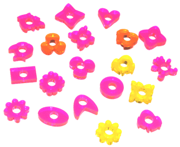 40 Various acrylic parts 3/4" with 1/4" hole. (Shape & colors may vary). Perfect for building new toys or adding to older toys for a new look! Washable and a great value! What a combination!! Sized for Budgies, Parrotlets, Neopheme, small Conures, Cockatiel, Lovebird, parakeets, small parrots.