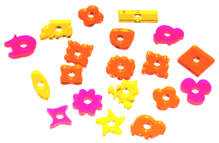 20 Various acrylic parts 1" with 1/4" hole. (Shape & colors may vary). Perfect for building new toys or adding to older toys for a new look! Washable and a great value! What a combination!! Sized for Budgies, Parrotlets, Neopheme, small Conures, Cockatiel, Lovebird, parakeets, small parrots.