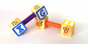 Another variation on the old fashioned barbell, soft, chewable wooden ABC blocks on each end of the colorful dowel center! Your mid to larger sized feathered kids will love this toy!