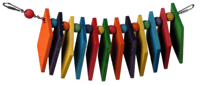 Another fun toy from Super Bird, this one is full of colorful, soft chewy pine diamond separated by colorful wooden beads ... all strung on nickel plated welded chain with quick links at both ends of easily hanging as a bridge in your FIDs house. Perfect for most mid to larger sized parrots (our greys love this toy) ... and remember save the chain to refill and make more toys! Lots of parts to choose from! Great price, lots of beak chewing fun and a good value! PERFECT!