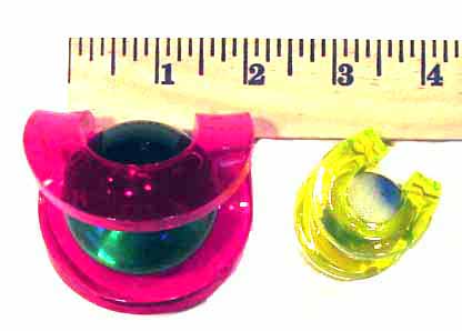 First you take an acrylic "donut" and a marble or acrylic ball-bend the donut around the ball so it can not be removed and viola! You have a rolling action foot toy to keep even the busiest of FIDs amused for hours!