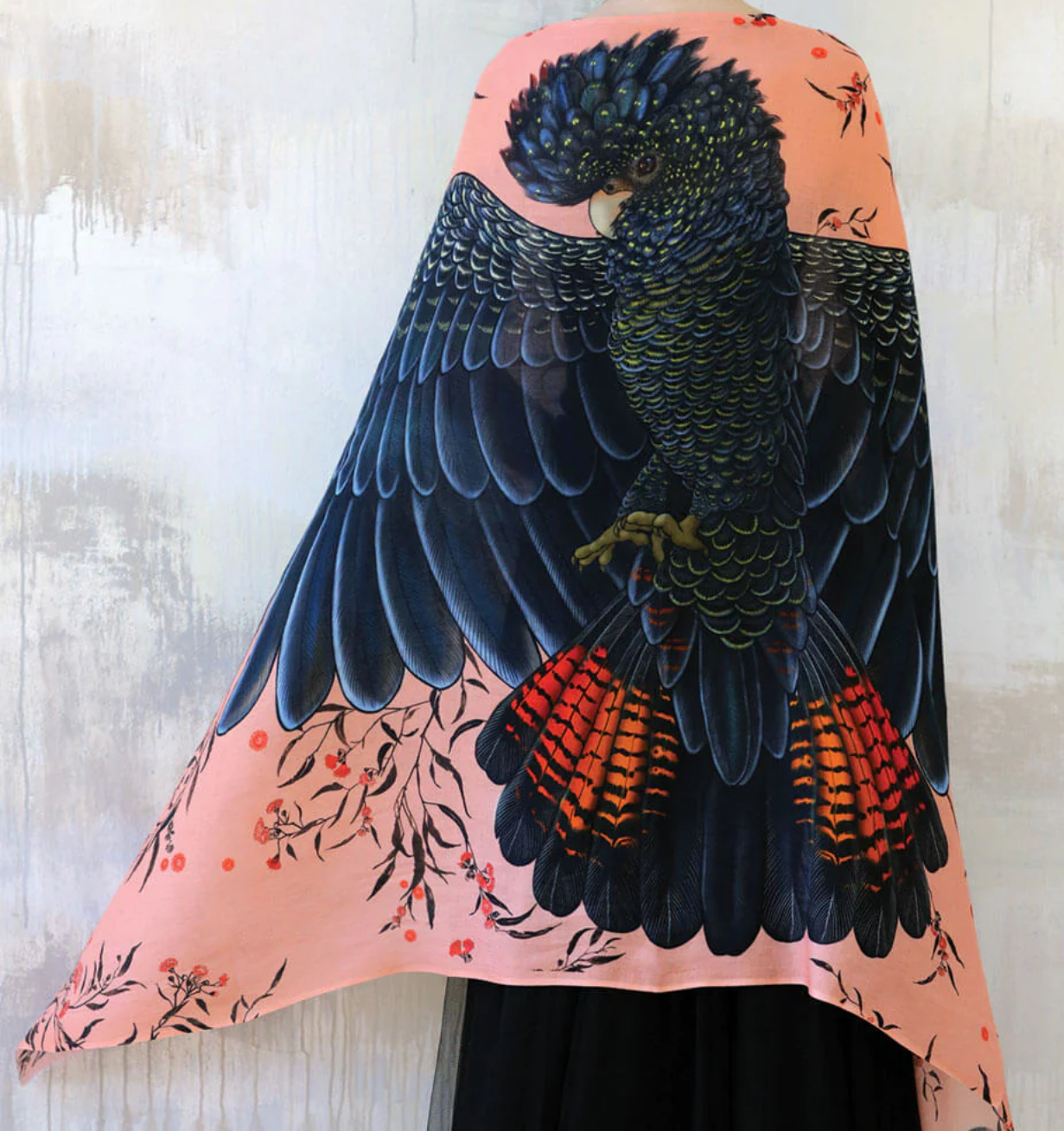 tail. Red speck for gum flowers. Scarf print is one sided, the opposite