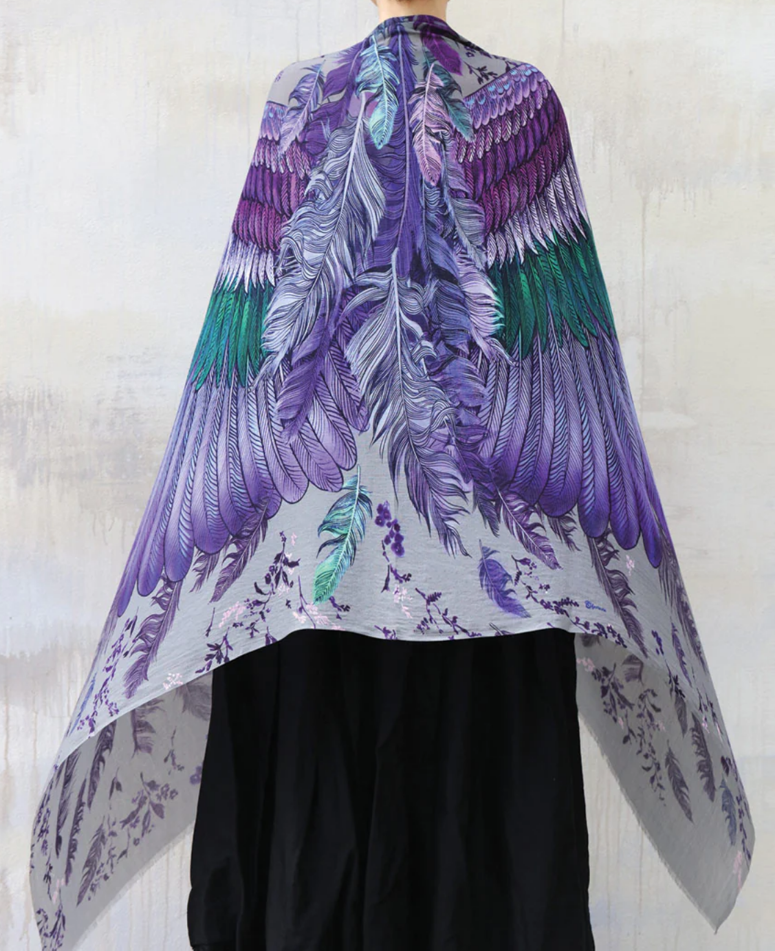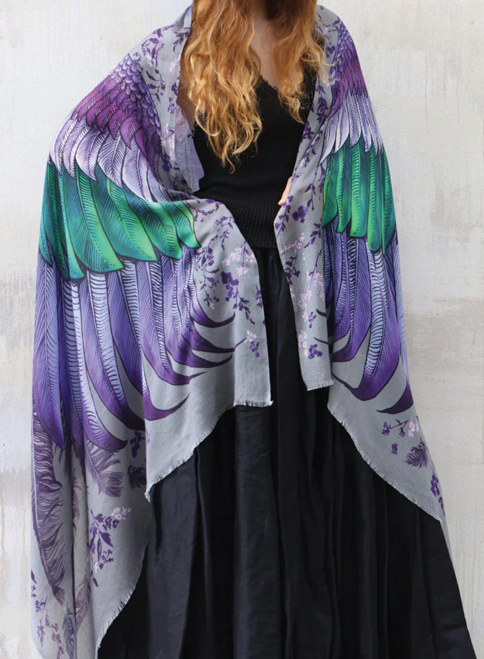 This is 100% certified organic cotton with print on one side, the other side is slightly lighter. This is a sheer matte, light material that breathes and drapes well. Neat edges, two shortest edges have a fray which gives the shawl a bohemian touch. Every detail is taken into account, from the texture of the feathers down to the color palette. Feel divine as you drape this luxurious scarf over your shoulders. This scarf would make the most amazing gift for your loved ones! Hand painted and digitally printed Art of wide - Calibri Floral winged Scarf. This highly detailed representation of nature, freedom and beauty is my labor of Love. Just put it over your shoulders to look & feel divine. This scarf would make the most amazing gift for your loved ones to treasure for years to come! Classic scarf or shawl, tube top or halter top, as a bandana or turban, sarong or wrap skirt. this unique piece of clothing will protect you from sun and will add that special something to any outfit. Shovava Shawls make wonderful gifts for friends, family and yourself! Lovely Purple and green combo, a true representation of femininity and freedom. A shawl that is sure to make you feel special and add a touch of color to your outfit. Scarf print is one sided, the opposite side is just a little paler. This is a special piece made from delicate soft material so please treat it accordingly: - If you wish to hand wash, immerse the garment and gently rinse. - Don't rub or soak. - Lay flat to dry in shade.