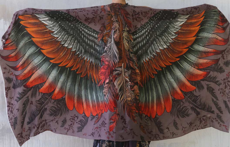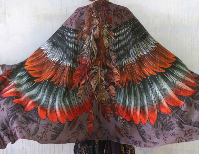 This is 100% certified organic cotton with print on one side, the other side is slightly lighter. This is a sheer matte, light material that breathes and drapes well. Neat edges, two shortest edges have a fray which gives the shawl a bohemian touch. Every detail is taken into account, from the texture of the feathers down to the color palette. Feel divine as you drape this luxurious scarf over your shoulders. This scarf would make the most amazing gift for your loved ones! Delicately hand-painted and digitally printed Art of Wide Spread Wings, this highly detailed representation of Nature, Freedom and Beauty is my Labor of Love. Just put it over your shoulders to look & feel divine. This scarf would make the most amazing gift for your loved ones! Classic scarf or shawl, tube top or halter top, as a bandana or turban, sarong or wrap skirt. this unique piece of clothing will protect you from sun and will add that special something to any outfit. Shovava Shawls make wonderful gifts for friends, family and yourself! Beautiful Fiery oranges and ashy grey shades of color - they are both subdued, powerful and otherworldly. A beautiful array of colors that work together in fresh unison. What makes this scarf truly amazing is its versatility. It can be worn with both light and dark colors and acts as a standout piece. Just put it over your shoulders to look & feel divine. This scarf would make the most amazing gift for your loved ones! A true representation of femininity and freedom. A shawl that is sure to make you feel special and add a touch of color to your outfit. Scarf print is one sided, the opposite side is just a little paler. This is a special piece made from delicate soft material so please treat it accordingly: - If you wish to hand wash, immerse the garment and gently rinse. - Don't rub or soak. - Lay flat to dry in shade.