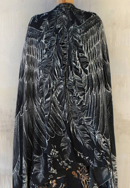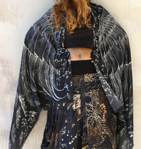 This is 100% certified organic cotton with print on one side, the other side is slightly lighter. This is a sheer matte, light material that breathes and drapes well. Neat edges, two shortest edges have a fray which gives the shawl a bohemian touch. Every detail is taken into account, from the texture of the feathers down to the color palette. Feel divine as you drape this luxurious scarf over your shoulders. This scarf would make the most amazing gift for your loved ones! Delicately hand-painted and digitally printed Art of Wide Spread Wings, this highly detailed representation of Nature, Freedom and Beauty is my Labor of Love. Just put it over your shoulders to look & feel divine. This scarf would make the most amazing gift for your loved ones! Classic scarf or shawl, tube top or halter top, as a bandana or turban, sarong or wrap skirt. this unique piece of clothing will protect you from sun and will add that special something to any outfit. Shovava Shawls make wonderful gifts for friends, family and yourself! Enjoy the Deep Dramatic Black and some Creams with hints of Browns. - they are both subdued, powerful and otherworldly. A beautiful array of colors that work together in fresh unison. What makes this scarf truly amazing is its versatility. It can be worn with both light and dark colors and acts as a standout piece. Just put it over your shoulders to look & feel divine. This scarf would make the most amazing gift for your loved ones! A true representation of femininity and freedom. A shawl that is sure to make you feel special and add a touch of color to your outfit. Scarf print is one sided, the opposite side is just a little paler. This is a special piece made from delicate soft material so please treat it accordingly: - If you wish to hand wash, immerse the garment and gently rinse. - Don't rub or soak. - Lay flat to dry in shade.