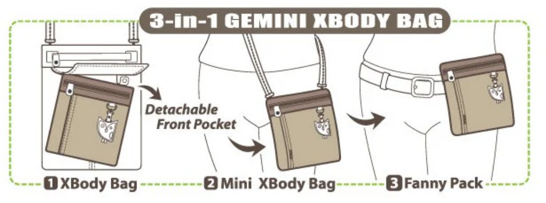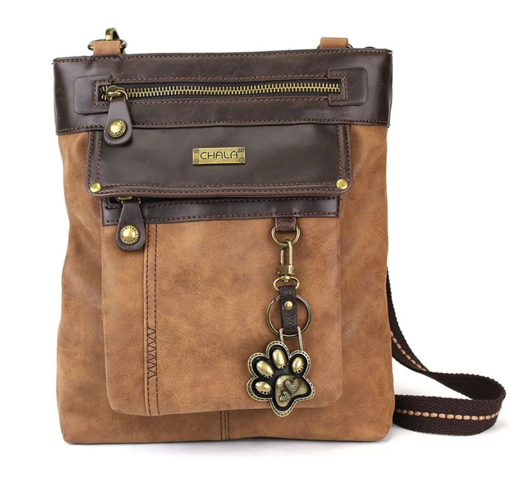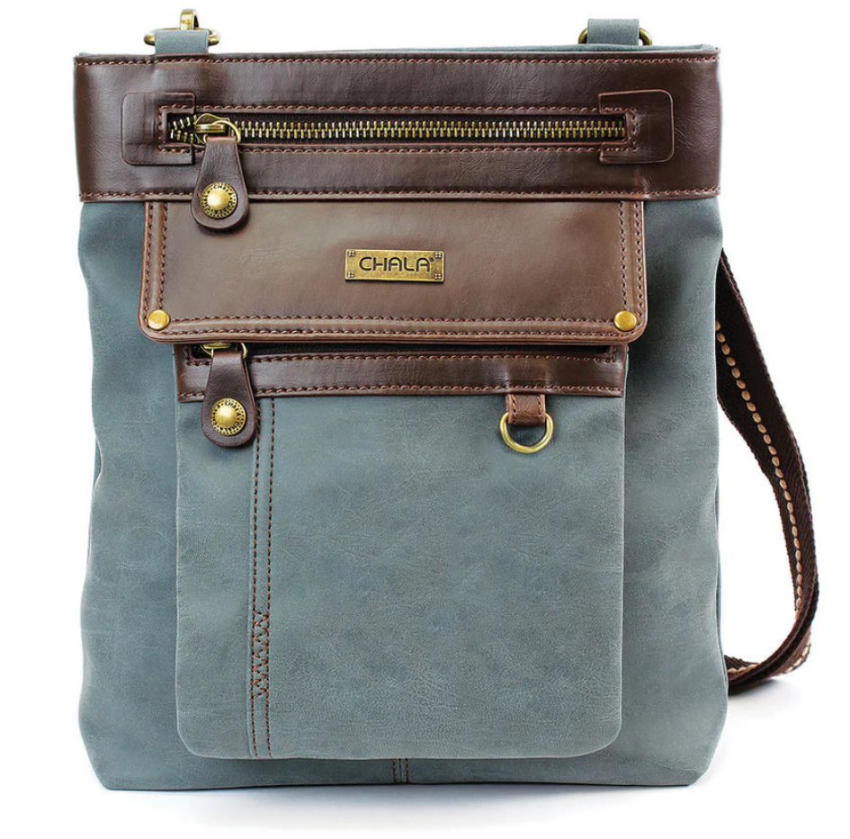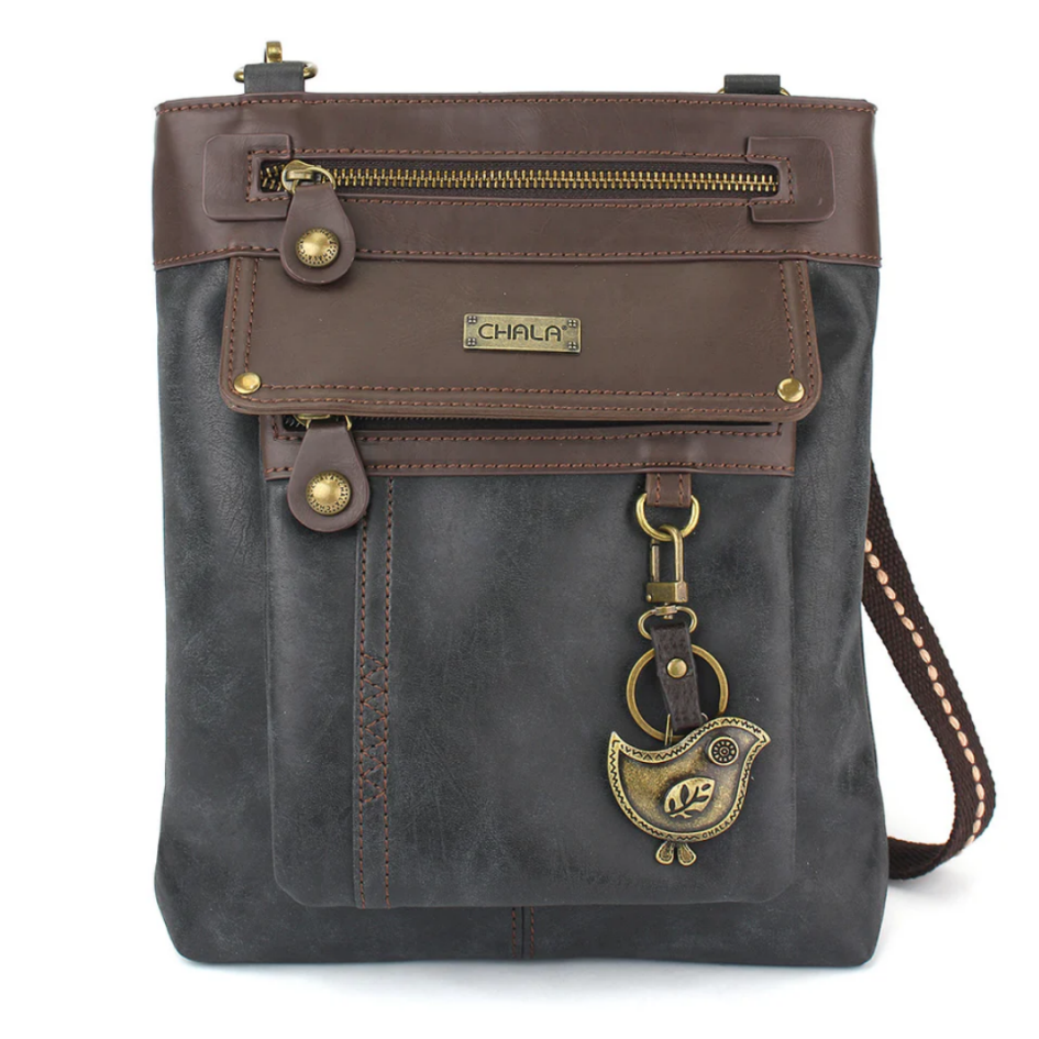 The Chala Gemini Crossbody currently omes in four colors: black, brown, gray, and stone gray. It's like getting two bags for one price! The front pocket is totally detachable and easily becomes a fanny pack or small crossbody. These are the perfect bags to show off your Metal Charming Keychain! There are so many fun choices that they will soon be a collectible! Click on photos for larger detail.