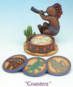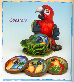 Coasters We fell in love with the Parrot wine bottle holders and then started adding others to our collection. Then we saw the bottle neck climbers ... also great collectibles that we just had to have. So we couldn't resist adding these humorous coaster sets to our inventory! Each set comes with a whimsical, fun coaster holder which includes 4 coordinating coasters! These can't help but put a smile on your face ... great gift, great collectible and great way to keep those nasty rings off the coffee table! Complete your set with the humorous bottle openers and corkscrews that can even be used for holding your glasses, keys or the remote!